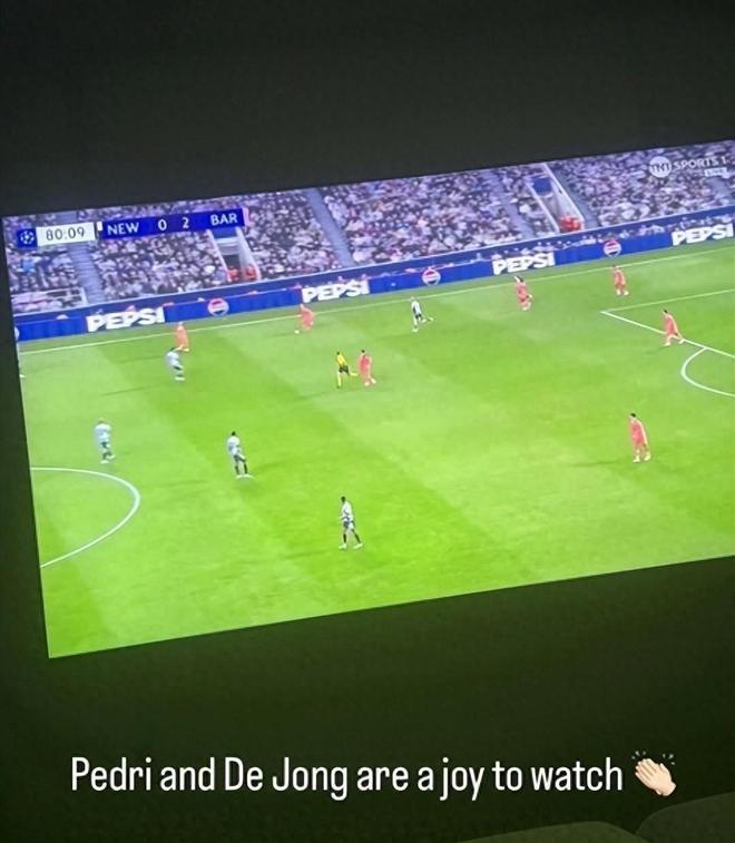 他在个人Instagram账号上发布了一张电视画面截图——正是纽卡斯尔主场迎战巴塞罗那的比赛直播画面。配文中,格拉利什毫不掩饰自己的欣赏之情:“能观看佩德里和德容的比赛真是太棒了!”并附上一个鼓掌的表情符号。