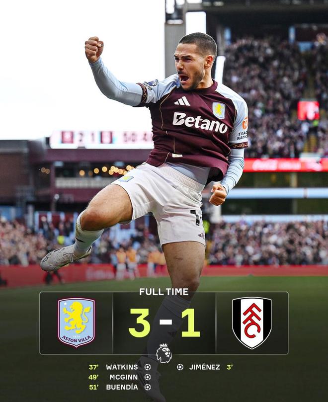 仅仅过了2分钟,刚刚替补登场的布恩迪亚抓住机会,在禁区中路劲射破门,将比分扩大为3-1!3分钟连进两球,主场球迷陷入狂欢,这一刻等了近一个月啊,终于有一场球打入3球啦,看来首胜有戏啦。随后富勒姆玩命反扑,但是面对士气正旺的维拉,外加上大马丁横刀立马在那,最终只能接受1-3败北,目送维拉收获联赛首胜。各项赛事2连胜,这也让埃梅里的执教压力暂时缓解。