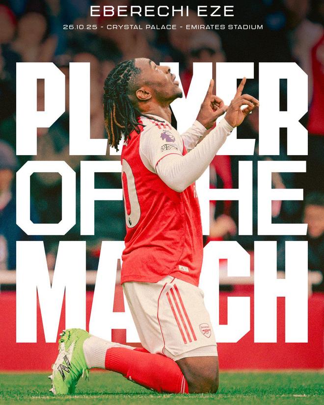 - 英超 | 战旧主破门!阿森纳官方:埃泽当选对阵水晶宫最佳球员