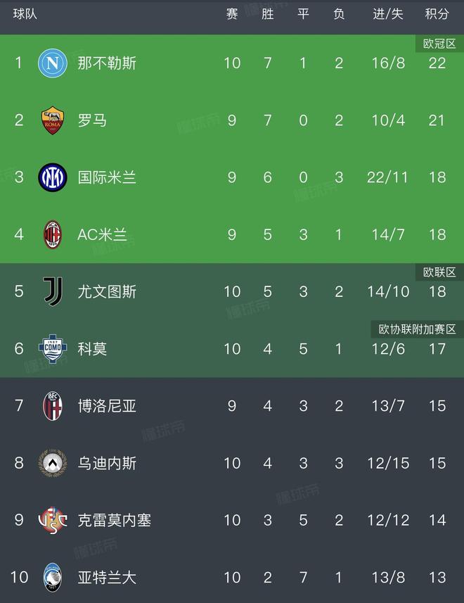 - 意甲 | 意甲最新积分战报:2场绝平,都灵绝杀,尤文倒下,罗马攀升第2