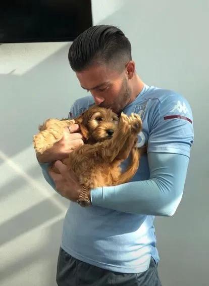 格拉利什近日带着心爱的可卡贵宾犬斯凯乘坐他新购入的价值26万英镑的阿斯顿马丁外出兜风。画面中,斯凯坐在方向盘前,与30岁的格拉利什一起出现在驾驶座。随行的还有他的伴侣萨莎-阿特伍德,他们一同造访了柴郡的一家农场商店。