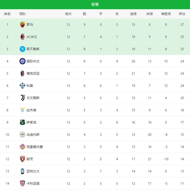 - 意甲 | 意甲最新积分战报罗马2连胜超过尤文追上AC米兰升至第3