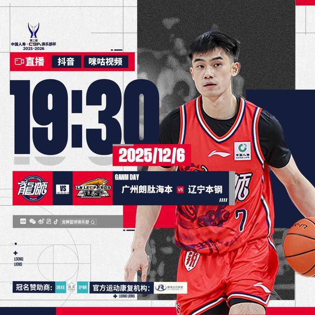 第二届中国人寿·CBA俱乐部杯小组赛 第三场⏰2025年12月6日 今晚 19:30广州朗肽海本 - 辽宁本钢直播:咪咕视频 & 抖音CBA俱乐部杯