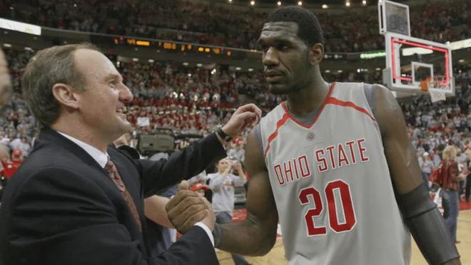 他承受的比赛压力更是常人难以想象,大一赛季初遭遇膝盖韧带伤病,直接缺席了小半个赛季,复出后在赛场上所有对手制定专门战术针对他, 所有中锋都想要通过限制他来证明自己,在这种被特殊针对的不利情况下,他交出了场均15.7分9.6篮板3.3盖帽的场均数据,在防守端充满统治力,赛季结束他获得全美大学最佳中锋和最佳防守球员荣誉,球队取得30胜3负战绩在疯狂三月被列为1号夺冠种子,他们一路过关斩将打进终极决赛。决赛对手是佛罗里达大学,他们与奥登对抗的资本就是艾尔-霍福德和防守悍将诺阿,这场比赛吸引了全美关注,在当年创造了收视纪录,奥登在后来两位NBA全明星级的内线夹击下15投10中砍下全场最高的25分,此外还有12篮板4盖帽,但他的队友贾马尔-巴特勒这场比赛外线失准,全场三分球7投1中仅得3分,最终俄亥俄州立大学以75比84不敌佛罗里达大学,奥登遗憾的错失了夺冠机会。