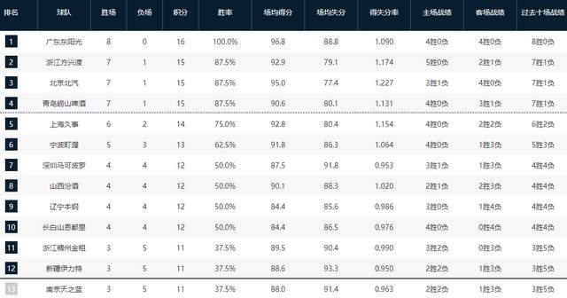 CBA排名又乱了!广东八连胜升榜首,北京赛季首败,广厦后来居上