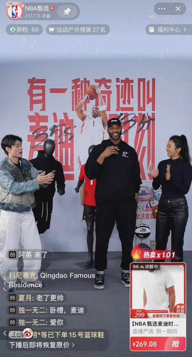除了直接用NBA IP加持商品之外,近年NBA还推出了“NBA甄选”社交电商品牌直播平台,通过社交直播帮助品牌带货。NBA对销售的加持力,还可以通过NBA加持销售渠道来体现。